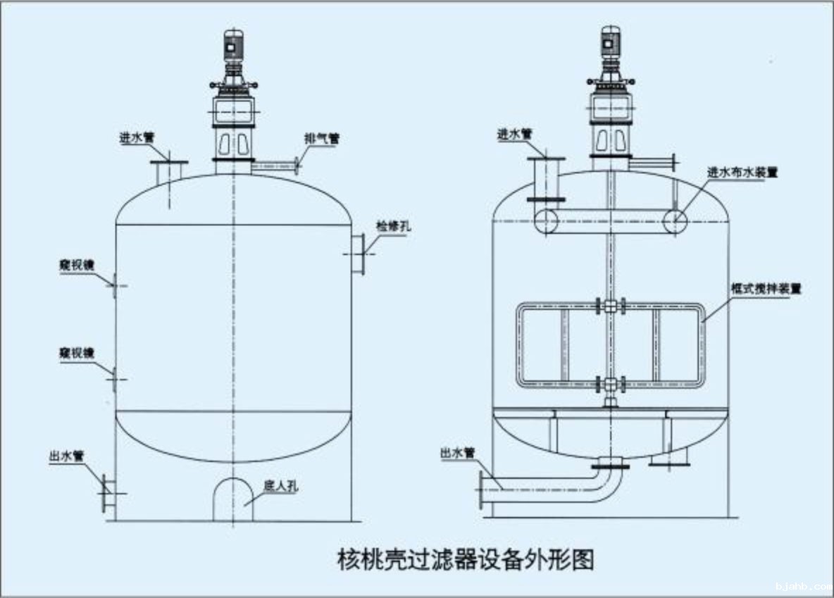 主要用于石化及其它含油污水处理的过滤器,采用有较强吸附能力、化学性质稳定,强度高,耐磨性好的核桃壳作为滤料介质,可采用单级或串联使用,保证出水水质。